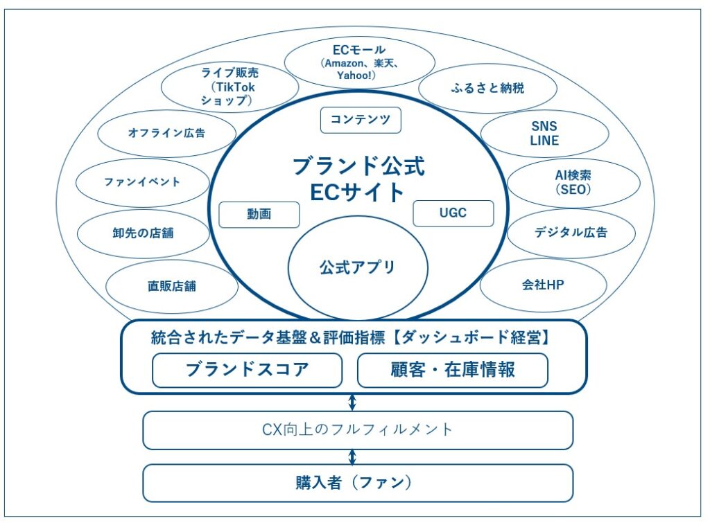 2026年以降は、EC事業を再定義し「EC販売」という領域を拡大した視点で、ブランド全体の成長戦略の中で、ブランド公式ECサイトを中心に置き、データの統合を行った上で、当社が提唱する「ブランドスコア(ブランド資産)」を軸に評価・数値化、各種施策を行っていく必要があると考えています。