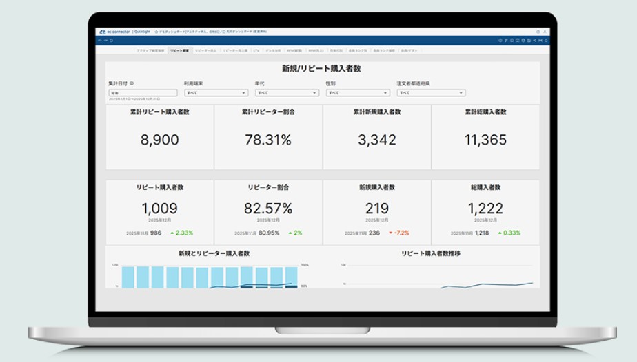 これからはAI技術も含め、重要な情報や指標を一目で把握できるよう視覚的に整理・表示することが標準化すると予測します。関係メンバーが同一画面を見ながら迅速かつ的確に意思決定や業務改善を行う「ダッシュボード経営」が求められます。EC運営においては、顧客別の購入履歴やサイトでの行動、在庫情報など、ブランドマーケティングに必要なデータを統合してダッシュボード化・ECマーケティングにも活用することが必須と予測します。