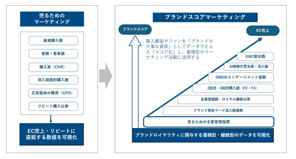 「売上に直結する指標」から「ブランドスコア」を重視するイメージ図