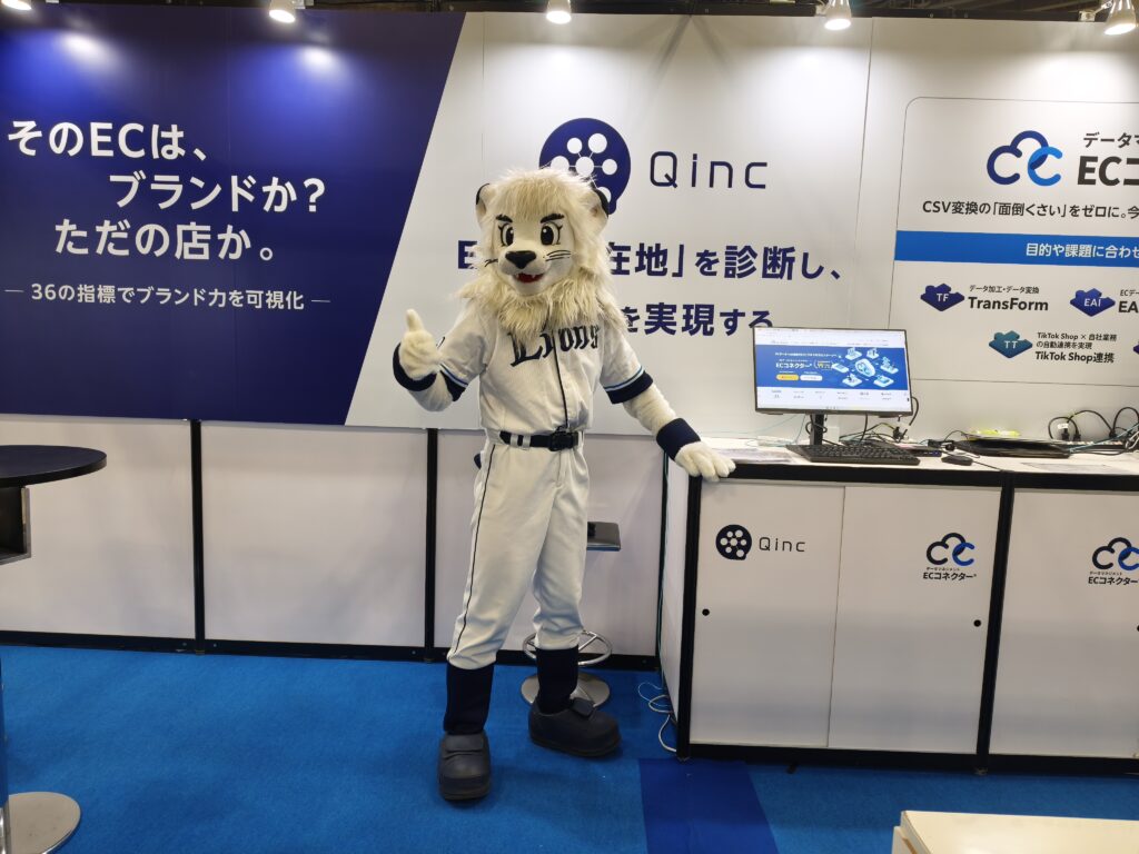 株式会社久、「イーコマースフェア東京2026」初出展のご報告 埼玉西武ライオンズ「レオ」が応援に来場