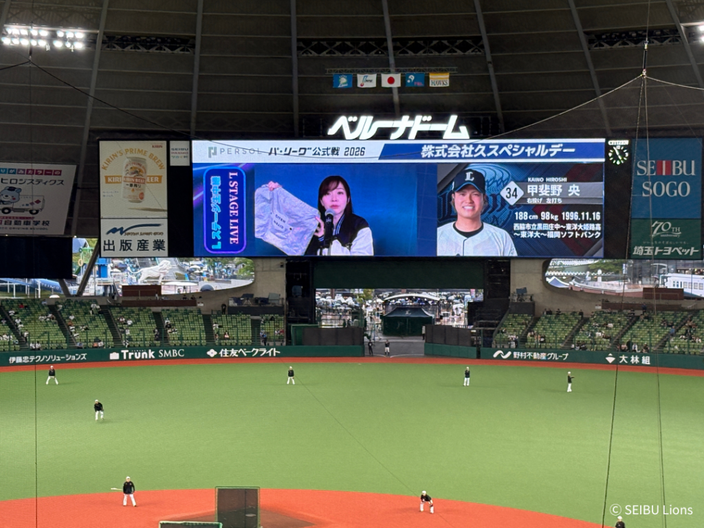 株式会社久(本社:東京都港区、代表取締役:工藤暢久、以下「当社」)は、2026年4月23日(木)ベルーナドームで行われた埼玉西武ライオンズ対福岡ソフトバンクホークス戦において、ゲームスポンサーとして「株式会社久スペシャルデー」を開催いたしました。