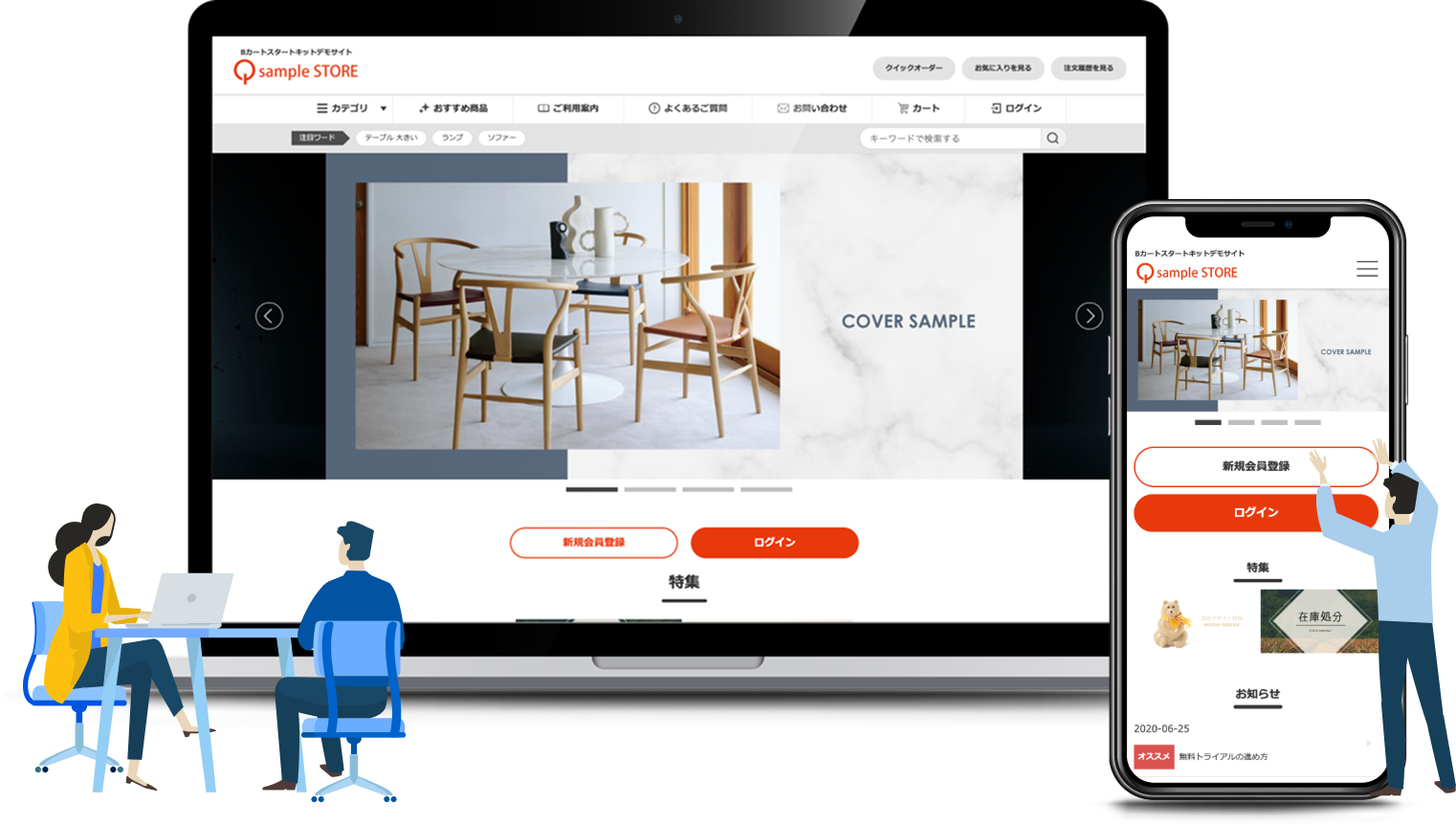 これまでのBtoC、BtoBのECサイト支援で培ったノウハウを標準化したオリジナルテンプレートが「Bカートスタートキット」のプランに含まれております。